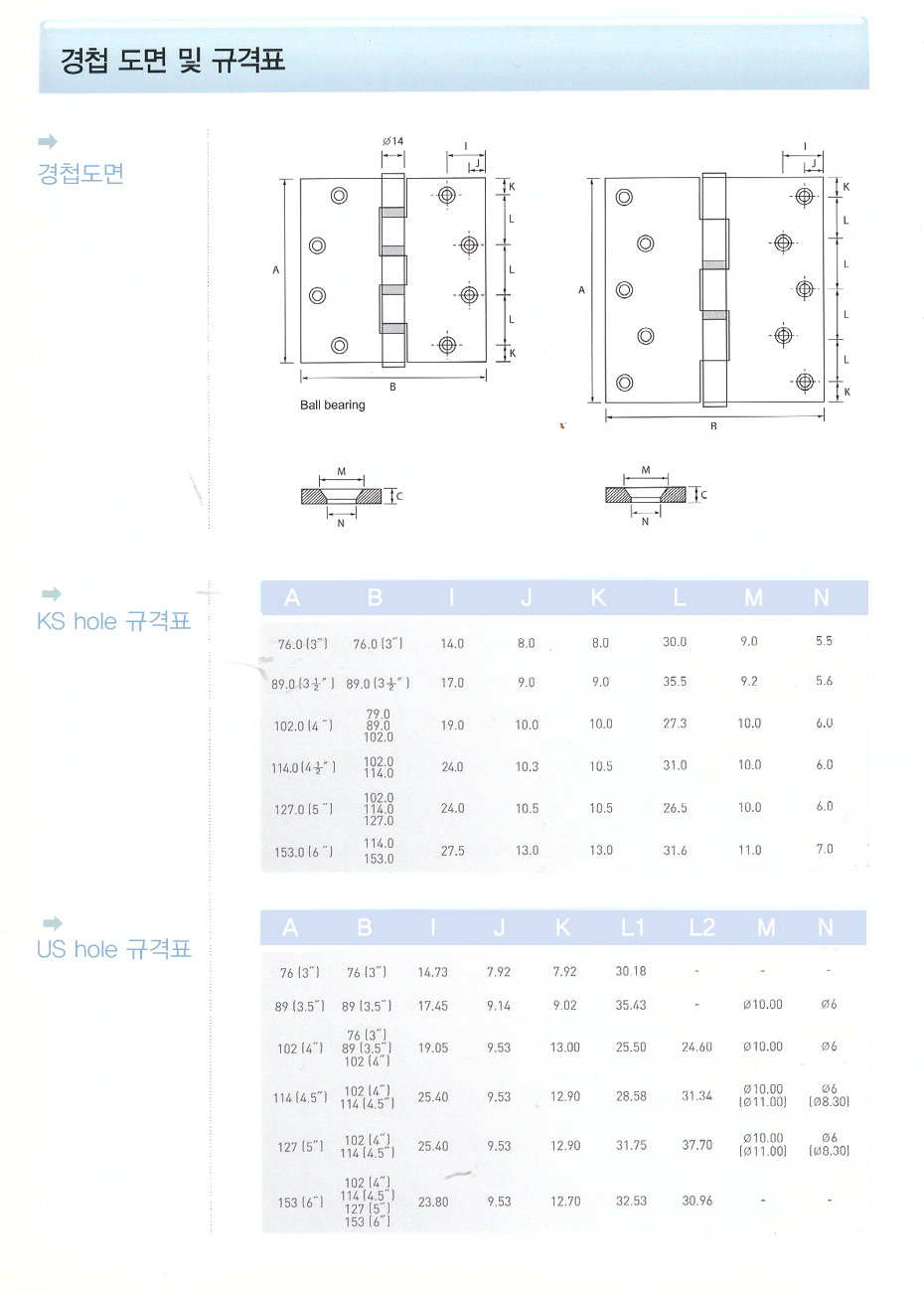 경첩도면 및 규격표